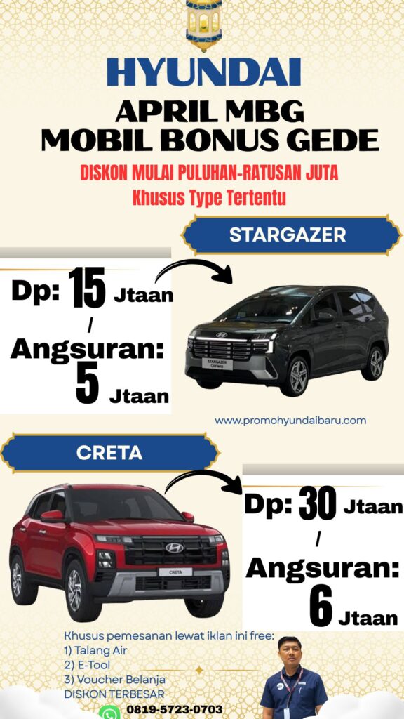 Pembelian mobil ke-2 berjalan lancar dan cepat layanannya. Dealer Hyundai memberikan layanan pelanggan yang luar biasa, dan mereka sangat membantu dalam memilih mobil yang sesuai dengan anggaran dan kebutuhan saya.