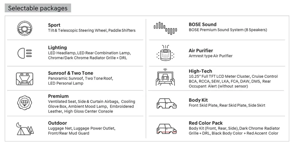 Saatnya memilih spotlight Anda sendiri melalui My Own CRETA. Tersedia lebih dari 9000 kombinasi pilihan untuk menciptakan CRETA yang paling sesuai dengan pribadi Anda.