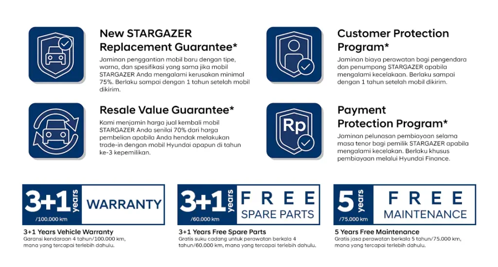 Hyundai melalui Owner Assurance Program memberikan perlindungan ekstra bagi kendaraan dan juga pengguna Hyundai STARGAZER. Kini semakin tenang punya Hyundai.